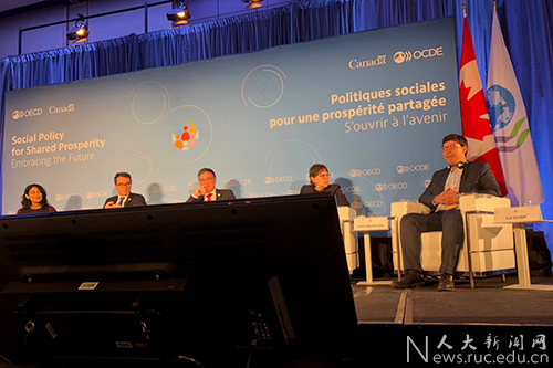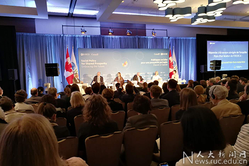 5月14-15日,国际经济合作与开发组织(OECD)在加拿大蒙特利尔举行社会政策论坛暨部长级会议。此次会议的主题为“分享财富、面向未来”。来自OECD各成员国社会保障相关部门的部长和负责人,哈佛大学、牛津大学、哥伦比亚大学等世界著名高校的专家学者,以及国际社会保障协会等国际组织的负责人和代表近200人参加此次会议。中国社会保障学会秘书长、中国人民大学副教授鲁全应OECD和国际劳工组织(ISSA)的联合邀请,作为中方的唯一代表参加了此次会议,并代表中国社会保障学会在社会政策分论坛上做主旨发言。