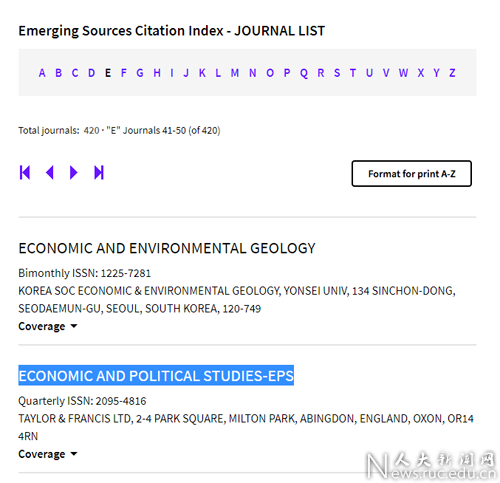 近日,由中国人民大学主办、Taylor & Francis负责海外出版的英文学术季刊《经济与政治研究》(Economic and Political Studies)已被ESCI(Emerging Sources Citation Index)新兴资源引文索引数据库正式收录,这是该刊国际影响进一步扩大的重要标志。