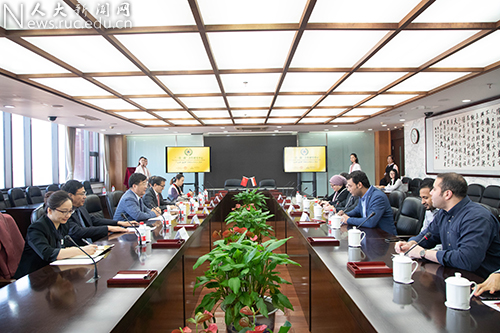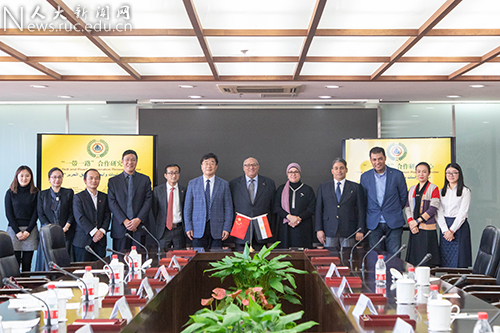 11月17日上午,中国人民大学国家发展与战略研究院与埃及艾因夏姆斯大学在中国人民大学签订共建“一带一路”合作研究中心谅解备忘录并举行揭牌仪式。中国人民大学校长、国家发展与战略研究院院长刘伟,埃及艾因夏姆斯大学校长阿卜杜勒·瓦哈卜(Abdel Wahab Ezzat)出席仪式并致辞。中国人民大学副校长刘元春主持签订仪式,副校长杜鹏会见埃及艾因夏姆斯大学相关领导。