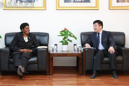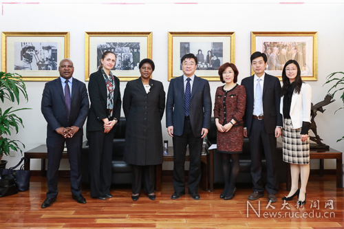 3月30日上午,中国人民大学校长刘伟会见了来访的南非驻华大使孟琪(Dolana Msimang)一行。双方就拓展中国与南非高校交流合作等话题进行了探讨。