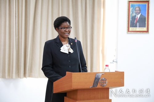 孟琪大使对中国人民大学表示感谢。她说,中国人民大学是中国顶尖的大学之一。此次有机会来中国人民大学演讲并成为国际关系学院中东与非洲研究中心的学术委员,她感到非常高兴。她希望以此次来访为契机,大力推动包括斯坦陵布什大学在内的优秀南非高校与中国人民大学在农业与农村发展等诸领域的交流合作,拓展更多合作的可能性。