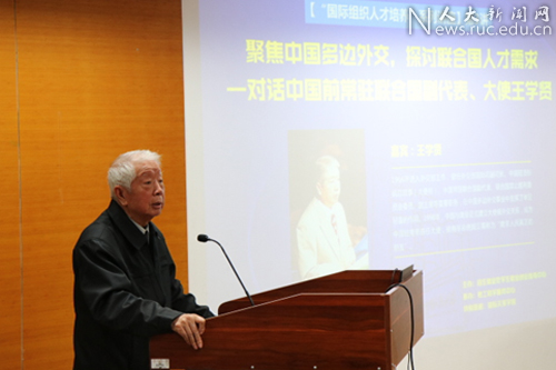10月9日下午,中国联合国协会副会长、联合国教科文组织亚太非物质文化中心顾问委员会主席王学贤做客中国人民大学“国际组织人才培养”系列讲座,为人民大学师生带来题为“聚焦中国多边外交,探讨联合国人才需求”的专题讲座。