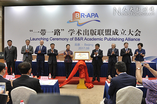 8月24日下午,“一带一路”学术出版联盟成立大会在中国人民大学举行。该联盟旨在积极响应“一带一路”建设,推动“一带一路”国家文化交流,提升中国学术成果的国际影响力,特在第24届北京国际图书博览会期间,由中国人民大学出版社发起,来自世界29个国家和地区的92家出版商、学术机构和专业团体共同成立。