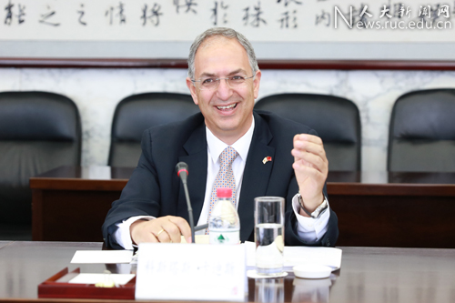 参加会见的还有中国人民大学国际交流处处长张晓京、经济学院党委书记兼副院长关雪凌、商学院院长毛基业、法学院副院长时延安等。