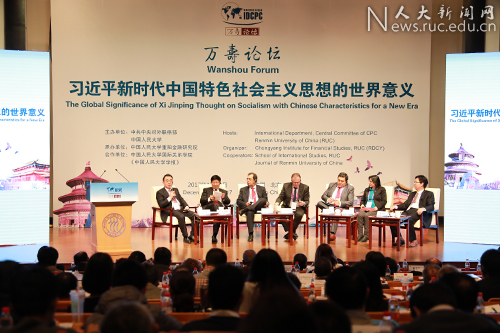 11月30日至12月3日,来自120多个国家、近300个政党和政党组织的领导人齐聚北京,出席“中国共产党与世界政党高层对话会”。中共中央总书记、国家主席习近平出席开幕式并发表主旨讲话。3日下午,作为“中国共产党与世界对话会”的收尾活动——万寿论坛:“习近平新时代中国特色社会主义思想的世界意义”主题对话会在人民大学召开。本届论坛由中共中央对外联络部和中国人民大学联合主办,中国人民大学重阳金融研究院承办,中国人民大学国际关系学院与《中国人民大学学报》合作筹办。中联部部副部长郭业洲、中国人民大学校党委书记靳诺出席并致辞;巴西社会党总书记雷内托·卡萨格朗德、委内瑞拉统一社会主义党副主席亚当·查韦斯等11个国家的政党领袖参与研讨,各方围绕政治、经济、社会、生态、国际合作、文明交流等不同角度,分别阐述习近平新时代中国特色社会主义思想的世界意义。