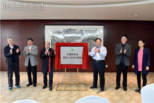 会议期间,中国林学会在中国人民大学苏州校区设立了“中国林学会国际人才培训基地”,并举行了基地的揭牌仪式,朱信凯与中国林学会副理事长兼秘书长陈幸良为基地揭牌。