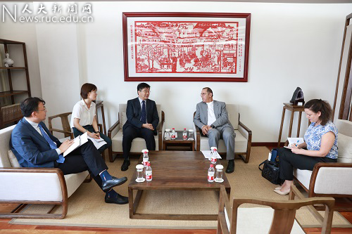 以色列驻华使馆文化学术处主任安若宁(Roni Abramson)一同来访;中国人民大学国际交流处处长时延安参加会见。