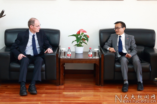 9月10日上午,中国人民大学副校长刘元春会见了来访的世界大学联盟新任首席执行官彼得·伦尼(Peter Lennie)教授。