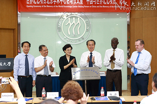7月11日,联合国教科文组织世界记忆项目北京学术中心启动仪式暨“中国与世界记忆项目”论坛在中国人民大学举行,本次论坛由中国国家档案局主办、中国人民大学信息资源管理学院(档案学院)协办。中国国家档案局局长、世界记忆项目亚太地区委员会主席李明华,中国人民大学党委书记靳诺、党委副书记郑水泉,北京社科规划办主任崔新建,联合国教科文组织世界记忆项目国际咨询委员会副主席Lothar Jordan、副主席Papa Momar Diop等国外专家,世界记忆项目亚太地区委员会特别顾问朱福强出席论坛,来自全国档案系统的专家学者和中国人民大学师生共70多人参加了论坛。