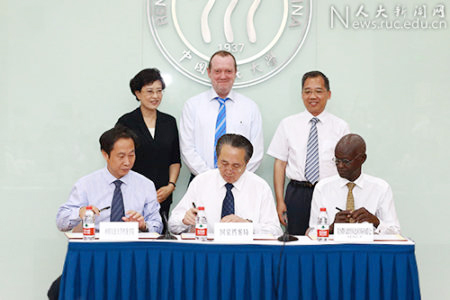 李明华、Papa Momar Diop和中国人民大学信息资源管理学院院长张斌正式签署三方合作备忘录,并为世界记忆项目北京学术中心成立揭牌,世界记忆项目北京学术中心正式启动。
