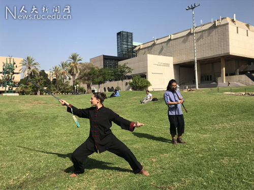 活动当天特大孔院还邀请到从中国留学回来的太极拳老师陈婉露(Talia Kav)表演了太极剑,并带领学生们表演了太极拳,中国留学生陈酿用箫声伴奏。表演结束后,不少学员围过来观察陈酿手中的“箫”。太极表演不仅展示了特大孔院太极班的教学成果,同时也促进了特大师生对中国太极文化的直观体验。