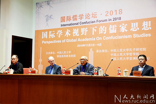11月2-4日,由中国人民大学和韩国高等教育财团联合主办的“国际儒学论坛·2018”在中国人民大学举行。本届论坛的主题为“国际学术视野下的儒家思想”。来自韩国、日本、美国、英国等国家以及国内的120余位专家学者参加论坛。