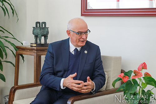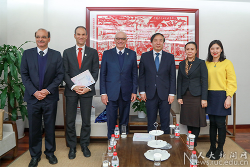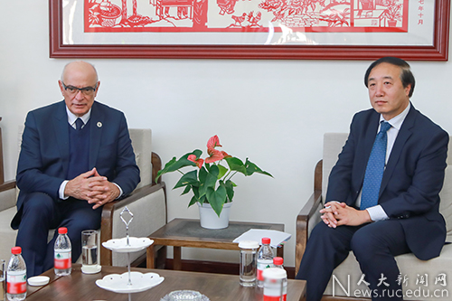 12月6日下午,中国人民大学副校长杜鹏会见巴西南大河州联邦大学校长瑞·文森特·奥普曼(Vicente Oppermann)。