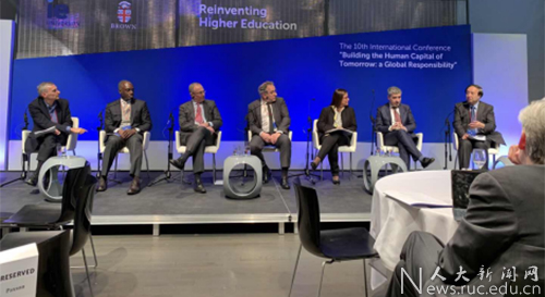 4月4日到5日,杜鹏一行出席在布朗大学举行的第十届“世界高等教育创新论坛”,与来自世界各地约40余名教育、商业、科研和创新领域的专家学者围绕“构建未来人类资本—全球共同的责任”这一主题,共同探讨教育信息化背景下未来高等教育的创新与发展。在开幕式论坛上,杜鹏与英国伦敦大学学院校长Michael Arthur、法国索邦大学校长Jean Chambaz、秘鲁太平洋大学校长Elsa del Castillo和卡塔尔哈马德本哈利法大学校长Ahmad Hasnah以“经济全球化背景下的新兴技术与高等教育”为主题展开讨论。杜鹏认为伴随着互联网与教育的日益融合,人们原有的学习方式、教育方式正在发生深刻的变革。当学习的地域不再受限于大学的围墙,当学习的广度不再局限于学科的划分,高等教育自身也正经历着一场前所未有的裂变。信息技术推动了高等教育的发展,也给高等教育提出了很大的挑战。高校在技术高速发展的现状下应当清晰自己的定位,更好的利用技术来促进高等教育的发展。