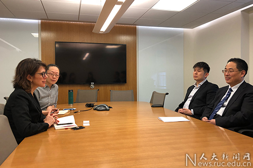 4月12日,朱信凯一行访问康奈尔大学,主管国际事务与跨学科建设的康奈尔大学副校长傅慧贞(Wendy Wolford)、康奈尔大学中国中心主任华颖等会见朱信凯一行。