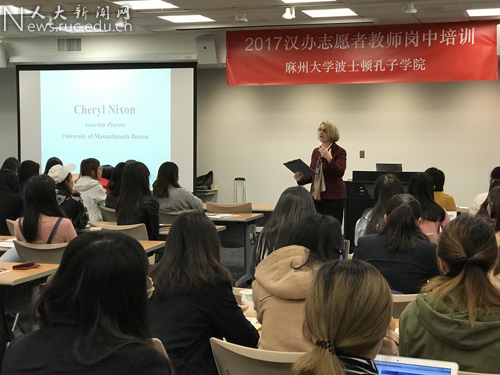 10月27-29日,麻州大学波士顿孔子学院连续第五年承办国家汉办志愿者教师岗中培训。麻州大学波士顿校区副教务长谢丽尔∙尼克松(Cheryl Nixon),中国驻纽约总领事馆教育领事杨中波、教育副领事吴忆蒙,汉办志愿者管理教师林秀琴、李明、李馨等参加开幕式和相关活动,来自美国32个州的150名志愿者教师参与了培训。
