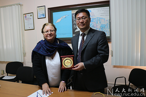 1月30日上午,李永强一行访问了墨西哥维拉克鲁斯大学驻墨西哥城办事处,受到了墨西哥维拉克鲁斯大学出版社长艾德格拉·格拉西,中国研究中心主任阿尼巴尔·索特雷和斯蒂文·索特雷的热情接待。李永强介绍了人大出版社的基本情况并且提出了合作的设想。艾德格拉对李永强的合作设想积极回应,双方签署了维拉克鲁斯大学出版社加入“一带一路”学术出版联盟合作协议以及与人大社的图书合作出版协议,共同探索多渠道、多方式的合作模式。会后李永强向艾德格拉授牌,欢迎成为“一带一路”学术出版联盟成员。维拉克鲁斯大学创建于1944年,是墨西哥五大国立大学之一。该校总部设在维拉克鲁斯州州府哈拉帕市,其他四个分校分布在该州其他四个城市。维拉克鲁斯大学是一所包含人文科学、社会科学、经济管理科学、自然科学、技术科学、农业科学和保健科学在内的综合性大学。其中国学研究中心特别专注于“一带一路”倡议国际影响力的研究。