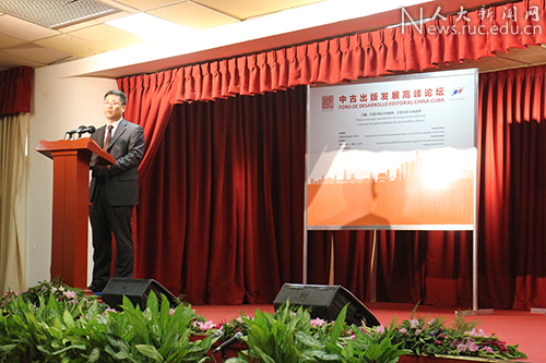 在2月2日举办的“中古出版发展高峰论坛”上,李永强代表中国学术出版社做了题为《搭建出版桥梁,促进友谊合作》的发言,在发言中,他阐述了人大出版社国际出版的三大方向——聚焦学术、聚焦中国、聚焦当代,不断将国外的优秀学术成果和文化介绍给中国的读者。还介绍了为积极开展走出去工作发起成立的“一带一路”学术出版联盟,为国际学术出版合作与交流提供更多机会。他还表示,希望和古巴及其拉美国家的出版界同事多交流,多沟通,探索更多的合作与交流的路径与方式。