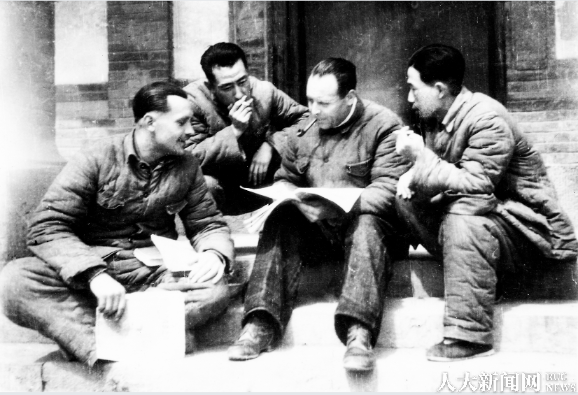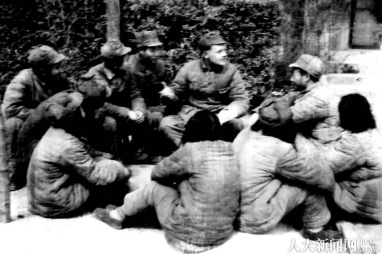 (华北大学二部外语系教员与同学们一起讨论问题)
