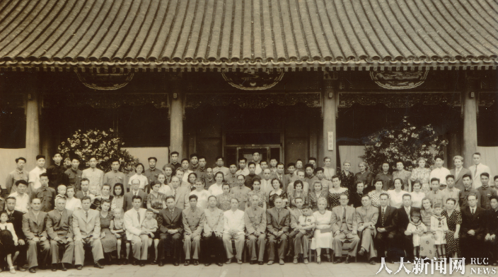 (20世纪50年代,中国人民大学校领导和教员与苏联专家及家属合影)