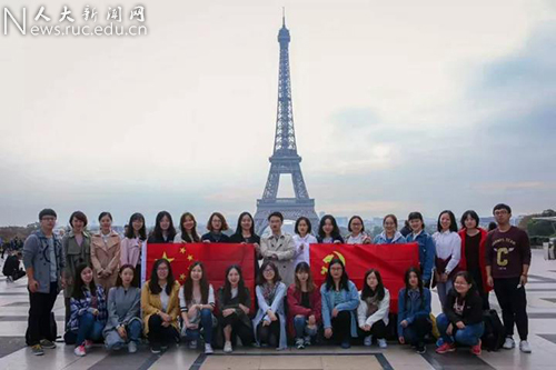 (中法学院2015级旅法本科生在巴黎喜迎国庆校庆)