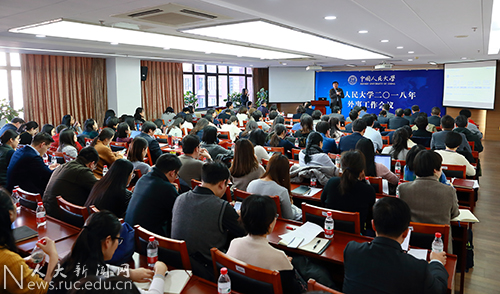 12月27日下午,中国人民大学召开2018年外事工作会议,校长刘伟出席会议并讲话。会议对学校国际化建设工作进行阶段性总结,就做好新时期教育对外开放工作、以学校“双一流”建设为目标努力提升学校国际化水平等方面提出具体的发展设想。会议由中国人民大学副校长杜鹏主持。