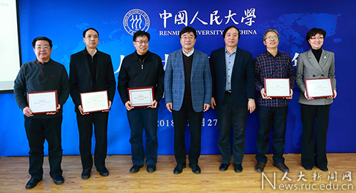 会议表彰了2018年度外事工作先进集体和先进个人。经济学院等10个单位被评为先进集体,王宇洁等20人被评为先进个人。刘伟、杜鹏为获奖单位代表及个人颁发证书。