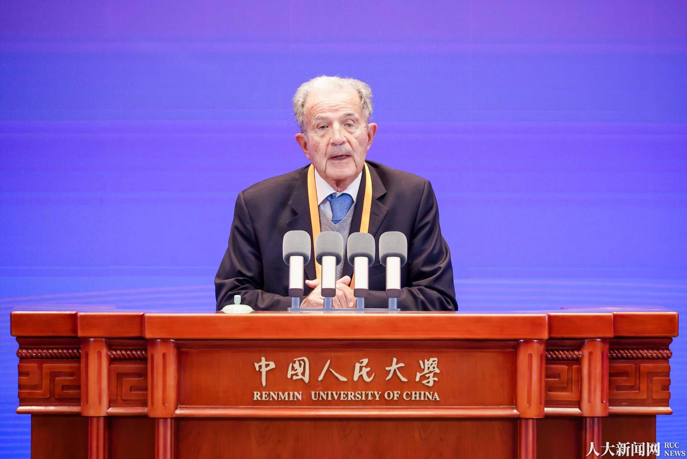 罗马诺·普罗迪、埃斯特韦斯·伊拉里奥、约尔格·库基斯、雷夏德·恰尔涅茨基分别作主旨演讲。中国人民大学常务副校长朱信凯主持。