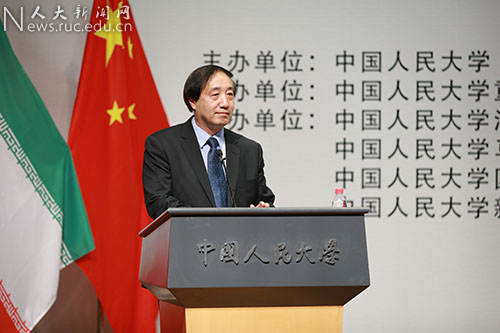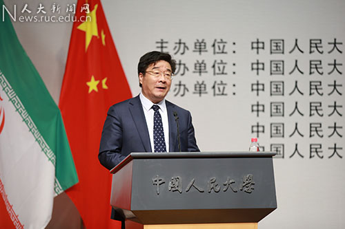 中国人民大学校长刘伟首先致欢迎辞。他表示 ,中伊两国友谊源远流长,早在2000多年前,古老的丝绸之路就将两国紧密地联系在一起,中伊两国犹如两颗璀璨的明珠,交相辉映在亚洲大陆东西两端。习近平主席共建“一带一路”的重大倡议,使得中伊关系迎来新的历史发展机遇,中国人民大学被誉为“在中国人文社会科学领域独树一帜”,学校一直高度重视与伊朗及“一带一路”沿线国家的文化教育交流合作,与伊朗高校科研机构之间建立了较为密切的合作关系。