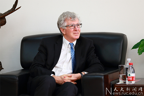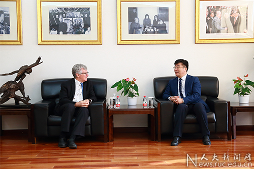 中国人民大学经济学院副院长郑新业、国际交流处副处长张大淼等参加会见。