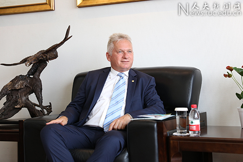 刘伟拉兹罗一行来访表示欢迎,并就学校发展概况、优势学科以及丝路学院、孔子学院的建设发展情况等进行介绍。他表示,中国人民大学是中国人文社会科学领域的著名大学, 在全国处于领先地位,同时,学校也致力于推动包括数学、物理、化学在内的理科发展;在教育部公布的第四轮学科评估结果中,人民大学共有14个学科获评A类学科;在国家 “一带一路”倡议的推动下,中国人民大学积极开展“一带一路”相关领域的人才培养及学术研究,并于近期成立了丝路学院,为“一带一路”沿线国家和地区培养国际化复合型高端人才和未来精英领袖。两校长期以来保持着良好的合作关系,希望以此次访问为契机,双方进一步深化在丝路学院、“一带一路”研究、孔子学院等领域的广泛合作。