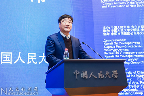 刘伟代表中国人民大学对与会嘉宾表示欢迎。他表示,在20世纪文学史上,艾特玛托夫的著作以其强烈的诗性气息、深沉的生态意识、真挚的人道情怀和超越的全球性思维而享誉世界,其作品曾经影响了整整一代人。在世界进入多极化的今天,艾特玛托夫有着新的现实意义,可以视作为不同文化之间融合交流的典范、不同民族间包容理解的桥梁、构建“人类命运共同体”可行途径的有益参考。