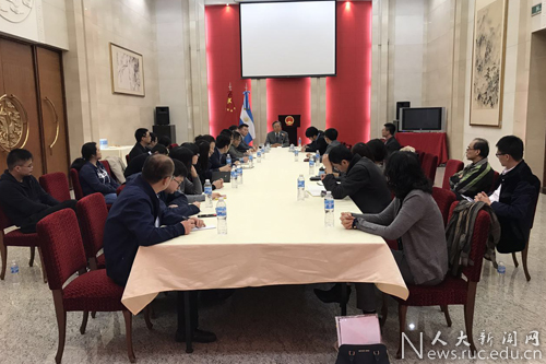 本次报告会由驻阿根廷使馆参赞王晓林主持,使馆外交官等参加。