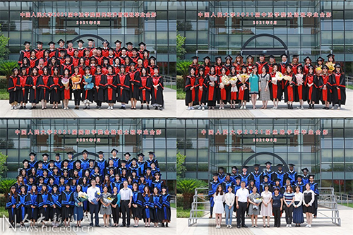 教授朱信凯、黎玖高、魏让方、冯寿农、江晓丽、王鹤菲向毕业生颁发学位证书,并为毕业生拨穗。