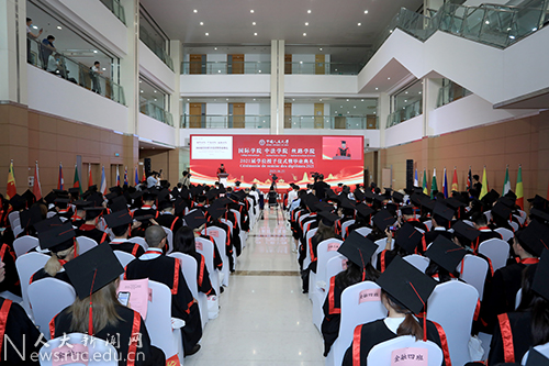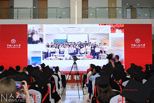方蔚玮宣读优秀毕业生名单。国际学院王若华、中法学院赵禹欧等16名学生获得“北京市优秀毕业生”荣誉称号,国际学院龙希程、中法学院黄润钰等26名学生获得“中国人民大学优秀毕业生”荣誉称号,国际学院高婉、中法学院周珂聪、丝路学院林音如等37名学生获得院级优秀毕业生荣誉称号。