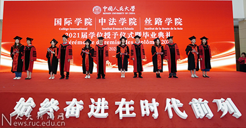 6月21日上午,国际学院、中法学院、丝路学院2021届学位授予仪式暨毕业典礼在苏州校区举行。