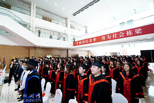 伴随着激昂的国歌声,国际学院、中法学院、丝路学院2021届学位授予仪式暨毕业典礼正式拉开序幕。