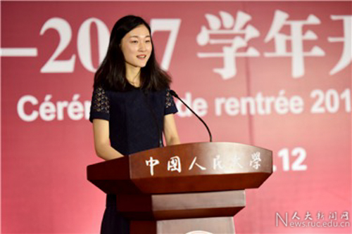 新生代表、国际学院2016级金融风险管理专业硕士研究生张善君同学分享了自己考入中国人民大学的激动心情、对苏州校区的美好印象以及对未来学习生活的憧憬,表示将怀着强烈的责任感和使命感,坚持敢为人先、勇于担当、实事求是、合作创新,为自己也为人大苏州校区的发展努力学习、顽强拼搏。
