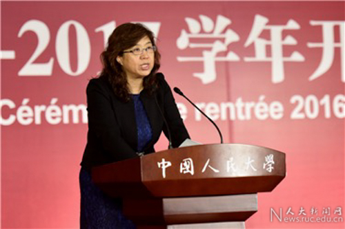 伊志宏副校长致辞。她代表学校、代表靳诺书记和刘伟校长向2016级新同学的到来表示热烈的欢迎,向各位新生家长表示崇高的敬意,向远道而来的法方合作高校的各位嘉宾、向长期支持苏州校区办学事业的苏州市各级部门和兄弟院校的领导表示衷心的感谢,向辛勤工作的苏州校区全体教师员工表示慰问并致以教师节的问候。她阐述了中国人民大学的光荣历史和文化积淀、发展现状与奋进目标、历史使命和时代责任。