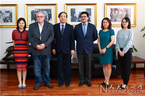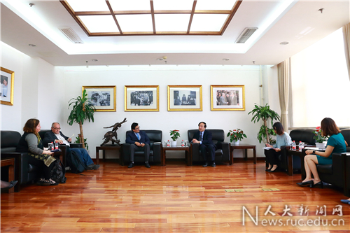 5月14日,中国人民大学副校长杜鹏会见了来访的厄瓜多尔钦博拉索国立大学代表团,代表团成员包括工学院院长派崔西欧·维拉克瑞斯(Patricio Villacres)、工学院赛达教授(Hugo Cerda)及厄瓜多尔驻华大使馆代表。