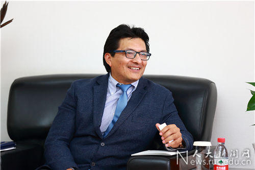 杜鹏就人民大学发展历史、综合实力、学科优势等情况进行了详细介绍。他表示,人民大学是中国人文社会科学领域的著名大学, 在经济学、法学、社会学、新闻传播学、统计学、工商管理、公共管理等学科处于全国领先地位。人民大学期待与厄瓜多尔高校开展交流与合作,并欢迎钦博拉索国立大学派学生来人民大学学习。