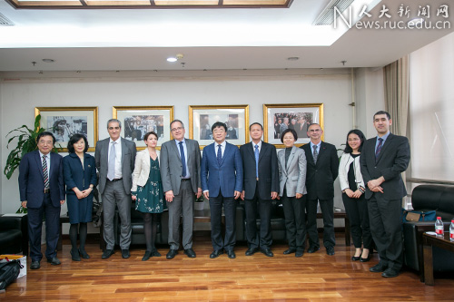 法国索邦大学副校长塞尔日·弗迪达(Serge Fdida)、法国驻华大使馆高等教育合作专员鲍佳佳(Stéphanie Balme)陪同来访。中国人民大学副校长杜鹏与法国索邦大学代表团一行进行了具体交流。