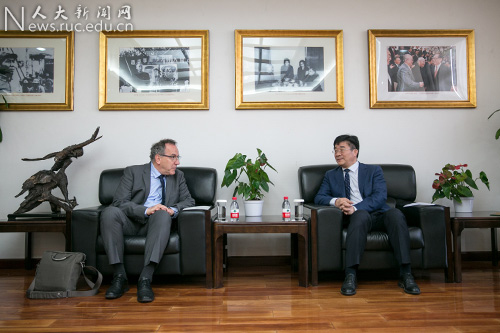 月23日下午,中国人民大学校长刘伟会见了来访的法国索邦大学校长让·尚巴兹(Jean Chambaz),就办好中法学院,与索邦大学开展更为紧密的全面合作进行了探讨。