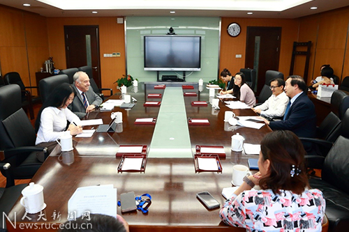7月24日上午,中国人民大学副校长刘元春、杜鹏会见了来访的世界大学联盟执行官约翰·赫恩(John Hearn)教授,双方就中国人民大学“双一流”建设、提升国际性战略及与世界大学联盟加强科研合作等事宜进行了深入探讨。