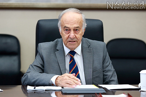 刘元春对赫恩一行来访表示欢迎,并就我国高等教育“双一流”建设工作、人民大学相关规划布局及科研国际化战略举措等作了介绍。他指出,中国人民大学作为一所以人文社会科学为主的综合性研究型大学,在学科规划发展上独具特色。学校按照习近平总书记提出的构建中国特色哲学社会科学的要求,在学科建设和发展上充分发挥人民大学现有优势,总结中国特色、吸收国际先进经验,力争尽早在更广阔的平台上与世界学术同行对话、提升国际影响。在介绍中国人民大学智库建设现状时,刘元春表示,人民大学有意愿、也能够通过一系列扎实举措为实现人才队伍和科研发展国际化提升、发挥高端智库公共外交职能等做出实绩。刘元春还邀请赫恩加入到人民大学“双一流”建设事业中,为学校全面提升国际性建言献策。