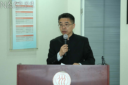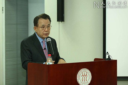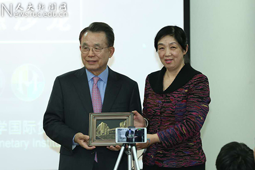 中国人民大学财政金融学院院长庄毓敏发表致辞,对韩升洙夫妇的到来表示欢迎。
