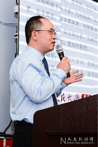 北美校友会副理事长、北美中文作家协会会长陈九结合“始终奋进在时代前列”的八十周年校庆主题,发表了《人民大学,从历史走向未来》专题演讲。他回顾了人民大学从陕北公学开始的发展历史,将中国近现代的发展脉络、中华民族觉醒奋斗的历程与人民大学的历史责任结合在一起,强调人大的过去和未来与中国的历史与未来不断交织在一起。