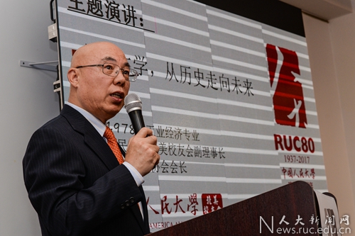 中国驻纽约总领馆教育参赞徐永吉代表总领馆教育组致辞。他说,中国人民大学有着悠久的历史,建校80周年以来,贯彻人民、人文、人本的理念,培养了很多人才,为社会做出了巨大的贡献。人大北美校友会的活跃,为广大留学生、校友提供了便利的服务,感谢校友会的辛勤工作。他希望广大校友们借助校友会平台,关注中美关系,鼓励大家发挥特长,发挥民间友好交流,为中美两国在文化、教育、科技等各个领域的交流做出贡献。