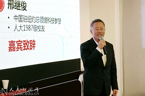 中国驻纽约总领馆科技参赞邢继俊是人大87级校友,他勉力校友们不管身处何方,首先保持身体健康,在事业发展的基础上为祖国发展尽一份力。