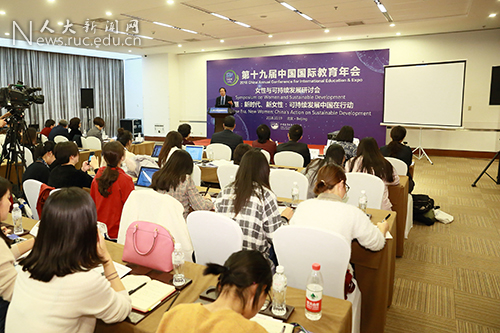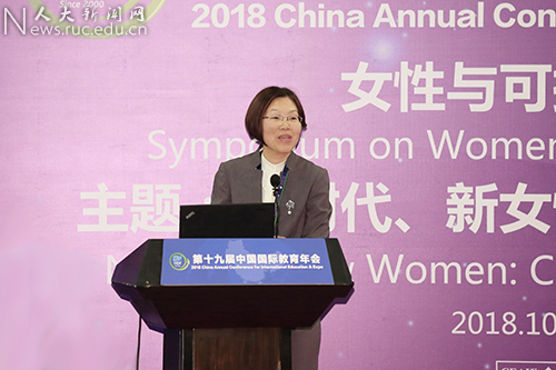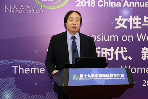 10月19日下午,由中国教育国际交流协会主办、中国人民大学国际交流处和教育学院联合承办的第十九届中国国际教育年会女性与可持续发展论坛在国家会议中心召开。中国人民大学党委书记靳诺出席会议并作主旨演讲,副校长杜鹏出席会议。